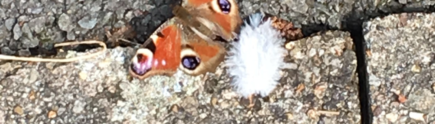 As we walked on, chatting excitedly about what had just happened, we both felt a little sad that the butterfly had left. Just then, I saw the familiar red colours of the velvety butterfly wings on the pavement up ahead. As we approached, I reached for my mobile phone and turned the camera on. There, sitting next to the white feather, was our butterfly, our grandad, next to our nan. There was my sign, loud and clear.